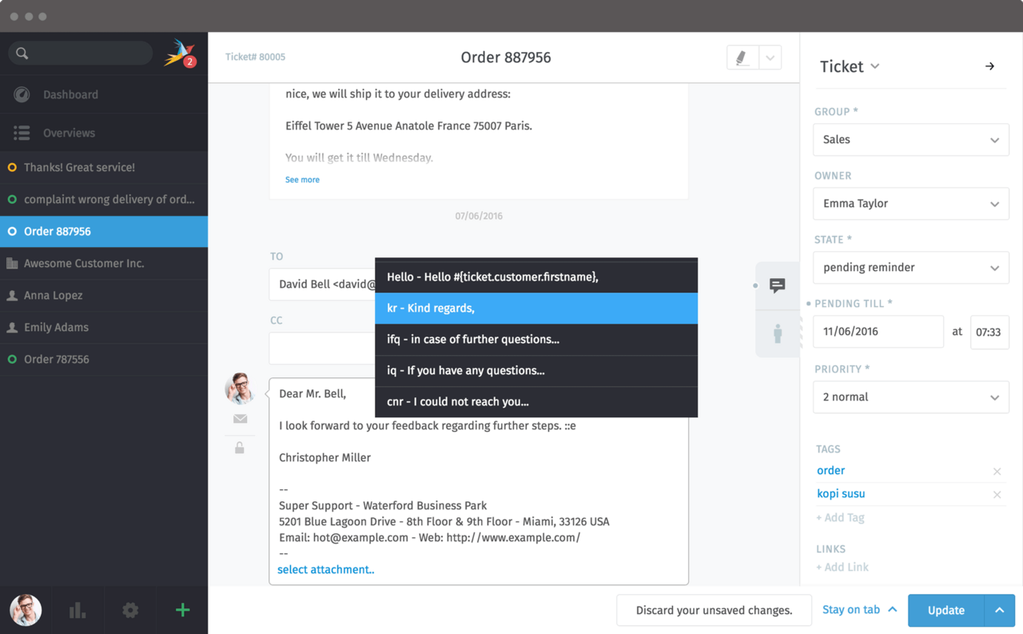 Is it one of those days? Sticky notes all over and the phone won’t stop ringing? There’s so much this ticketing system can do! Connect all your communication channels, easily grant user rights, and receive helpful reporting. Have everything under control – and your customers under your spell. Find out how and where we can help you to provide your best customer support yet.